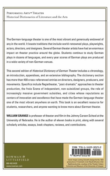 This second edition of Historical Dictionary of German Theater covers German theater's history through a chronology, an introductory essay, appendixes, and an extensive bibliography.