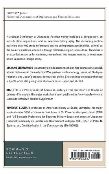 The Historical Dictionary of Japanese Foreign Policy includes a chronology, an introduction, appendixes, and an extensive bibliography. The dictionary section has over 400 cross-referenced entries on important personalities, politics, economy, foreign relations, religion, and culture.