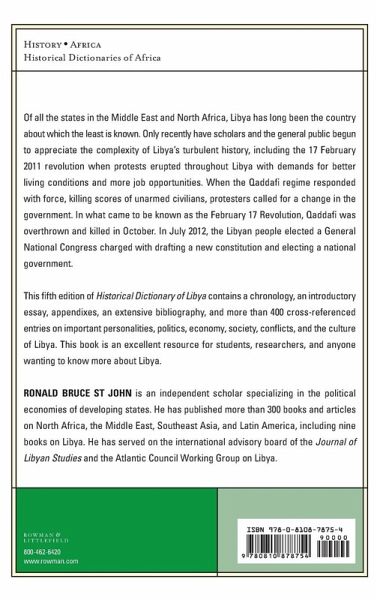 This fifth edition of Historical Dictionary of Libya covers its history through a chronology, an introductory essay, appendixes, and an extensive bibliography. The dictionary section has over 400 cross-referenced entries on important personalities, politics, economy, society, conflicts, and the culture of Libya.