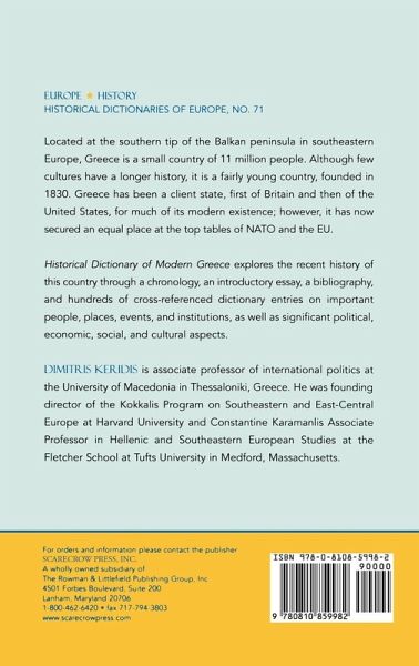 The Historical Dictionary of Modern Greece explores the modern history of this country through a chronology, an introductory essay, a bibliography, and hundreds of cross-referenced dictionary entries on important persons, places, events, and institutions, as well as on significant political, economic, social, and cultural aspects.