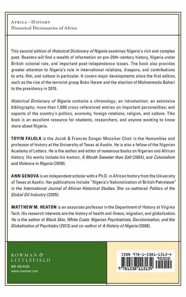 This second edition of Historical Dictionary of Nigeria: Second Edition contains a chronology, an introduction, and an extensive bibliography. The dictionary section has over 1,000 cross-referenced entries on important personalities, politics, economy, foreign relations, religion, and culture.