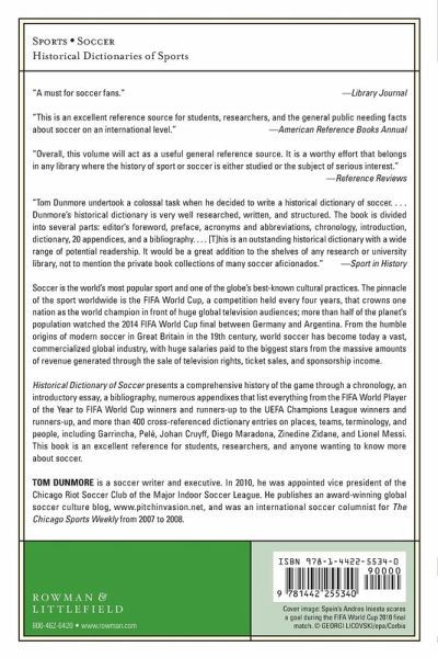 The Historical Dictionary of Soccer presents a comprehensive history of the game through a chronology, an introductory essay, a bibliography, numerous appendixes that list everything from the FIFA World Player of the Year to FIFA World Cup Winners and Runners-Up to the UEFA Champions League Winners and Runners-Up, and over 400 cross-referenced dictionary entries on places, teams, terminology, and people, including Garrincha, Pelé, Johan Cruyff, Diego Maradona, Zinedine Zidane, and Lionel Messi. This book is an excellent access point for students, researchers, and anyone wanting to know more about soccer.