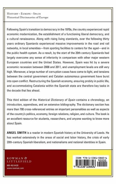 Since Spain's transition to democracy there has been rapid economic modernization, the establishment of a functioning liberal democracy, and a cultural renaissance. One area in which ordinary Spaniards have noted a massive change since the 1970s has been in the transformation of the road and rail networks, and also in local amenities--from sporting facilities to centers for the aged. Also impressive is the cleanliness of Spanish cities and the efforts put into town planning. And from the 1980s the country also built a successful public health system. As a result, for the first time since the 19th century Spaniards can largely look toward the West without any sense of inferiority (though, in recent years, confidence has been hit by the deep recession of 2008-2011 and the constant corruption scandals). This third edition of Historical Dictionary of Spain contains a chronology, an introduction, appendixes, and an extensive bibliography. The dictionary section has over 700 cross-referenced entries on important personalities, politics, economy, foreign relations, religion, and culture. This book is an excellent resource for students, researchers, and anyone wanting to know more about Spain.