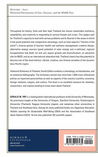 Throughout its history Siam and then later Thailand has shown remarkable resiliency, adaptability, and creativity in responding to serious threats and crises. This augurs well for Thailand's capacity to deal with the serious problems described above and to flourish in the areas in which it has great potential and comparative advantage, such as food exports ("kitchen of the world"); diverse genres of tourism; health and wellness management; creative design; alternative energy sources (great potential of solar energy and e-vehicles); regional transportation hub (both rail and air); export growth and diversification; an attractive site for MICE; and as an international education hub. Thailand clearly has the potential to become one of the most distinct, vibrant, creative, and diverse societies of the dynamic Asia-Pacific region. Historical Dictionary of Thailand, Fourth Edition contains a chronology, an introduction, and an extensive bibliography. The dictionary section has more than 1,000 cross-referenced entries on important personalities as well as aspects of the country's politics, economy, foreign relations, religion, and culture. This book is an excellent resource for students, researchers, and anyone wanting to know more about Thailand.