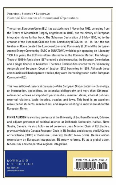 This new edition of Historical Dictionary of the European Union has a chronology, an introductory essay, appendixes, and an extensive bibliography. The dictionary section has over 400 cross-referenced entries on important personalities, member states, internal policies, external relations, basic theories, treaties, and law. This book is an excellent access point for students, researchers, and anyone wanting to know more about the European Union.