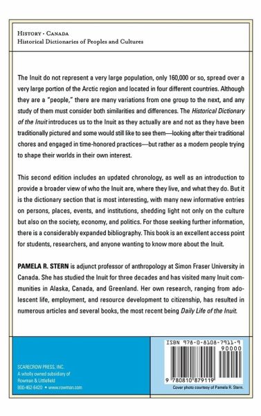 This second edition of Historical Dictionary of the Inuit provides a history of the indigenous peoples of North Alaska, arctic Canada including Labrador, and Greenland. This is done through a chronology, an introductory essay, an extensive bibliography, and over 400 cross-referenced dictionary entries on significant persons, places, events, institutions, and aspects of culture, society, economy, and politics. This book is an excellent access point for students, researchers, and anyone wanting to know more about the Inuits.