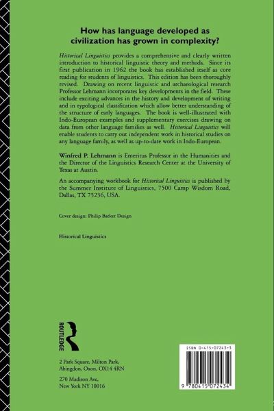 Historical Linguistics provides a comprehensive and clearly written introduction to historical linguistic theory and methods. Since its first publication in 1962 the book has established itself as core reading for students of linguistics. This edition has been thoroughly revised. Drawing on recent linguistic and archaeological research Professor Lehmann incorporates key developments in the field. These include exciting advances in the history and development of writing: and in typological classification which allows better understanding of the structure of early languages. Well-illustrated with Indo-European examples, and supplementary exercises which draw on data from other language families as well, the book will enable students to carry out independent work in historical studies on any language family, as well as up-to-date work in Indo-European.