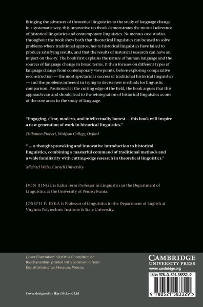 Bringing the advances of theoretical linguistics to the study of language change in a systematic way, this innovative textbook demonstrates the mutual relevance of historical linguistics and contemporary linguistics. Numerous case studies throughout the book show both that theoretical linguistics can be used to solve problems where traditional approaches to historical linguistics have failed to produce satisfying results, and that the results of historical research can have an impact on theory. The book first explains the nature of human language and the sources of language change in broad terms. It then focuses on different types of language change from contemporary viewpoints, before exploring comparative reconstruction - the most spectacular success of traditional historical linguistics - and the problems inherent in trying to devise new methods for linguistic comparison. Positioned at the cutting edge of the field, the book argues that this approach can and should lead to the re-integration of historical linguistics as one of the core areas in the study of language.