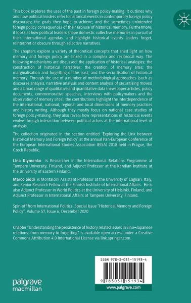 This book explores the uses of the past in foreign policy-making. It outlines why and how political leaders refer to historical events in contemporary foreign policy discourses; the goals they hope to achieve; and the sometimes unintended foreign policy consequences of their (ab)use of historical memory. Furthermore, it looks at how political leaders shape domestic collective memories in pursuit of their international agendas, and highlight historical events leaders forget, reinterpret or obscure through selective narratives.