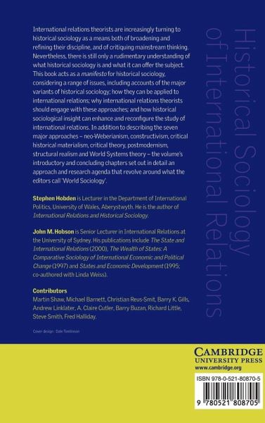 International relations theorists are increasingly turning to historical sociology as a means both of broadening and refining their discipline, and critiquing mainstream thinking. Nevertheless, there is still only a rudimentary understanding of what historical sociology is and what it can offer the subject. This 2001 book acts as a manifesto for historical sociology, considering a range of issues, including accounts of the major variants of historical sociology; how they can be applied to international relations; why international relations theorists should engage with these approaches; and how historical sociological insight can enhance and reconfigure the study of international relations. In addition to describing the seven major approaches - neo-Weberianism, constructivisim, critical historical materialism, critical theory, postmodernism, structural realism and World Systems theory - the volume's introductory and concluding chapters set out in detail an approach and research agenda that revolve around what the editors call 'world sociology'.