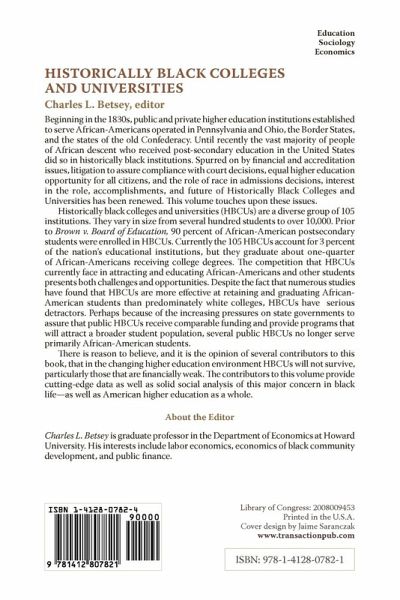 Beginning in the 1830s, public and private higher education institutions established to serve African-Americans operated in Pennsylvania and Ohio, the Border States, and the states of the old Confederacy. Until recently the vast majority of people of African descent who received post-secondary education in the United States did so in historically black institutions. Spurred on by financial and accreditation issues, litigation to assure compliance with court decisions, equal higher education opportunity for all citizens, and the role of race in admissions decisions, interest in the role, accomplishments, and future of Historically Black Colleges and Universities has been renewed. This volume touches upon these issues. Historically Black Colleges and Universities (HBCUs) are a diverse group of 105 institutions. They vary in size from several hundred students to over 10,000. Prior to Brown v. Board of Education, 90 percent of African-American postsecondary students were enrolled in HBCUs. Currently the 105 HBCUs account for 3 percent of the nation's educational institutions, but they graduate about one-quarter of African-Americans receiving college degrees. The competition that HBCUs currently face in attracting and educating African-American and other students presents both challenges and opportunities. Despite the fact that numerous studies have found that HBCUs are more effective at retaining and graduating African-American students than predominately white colleges, HBCUs have serious detractors. Perhaps because of the increasing pressures on state governments to assure that public HBCUs receive comparable funding and provide programs that will attract a broader student population, several public HBCUs no longer serve primarily African-American students. There is reason to believe, and it is the opinion of several contributors to this book, that in the changing higher education environment HBCUs will not survive, particularly those that are financially weak. The contributors to this volume provide cutting-edge data as well as solid social analysis of this major concern in black life--as well as American higher education as a whole.
