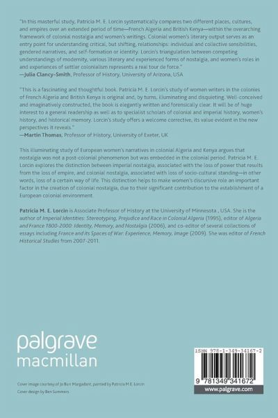 "This book builds on recent moves in the historical discipline towards interdisciplinary, transnational history, providing a unique, comparative account of colonial nostalgia throughout the twentieth century and into the first decade of the twenty-first century ... Lorcin masterfully intertwines historical narrative with literary analysis." - French History 'In this masterful study, Patricia M. E. Lorcin systematically compares two different places, cultures, and empires over an extended period of time-French Algeria and British Kenya-within the overarching framework of colonial nostalgia and women's writings. Colonial women's literary output serves as an entry point for understanding critical, but shifting, relationships: individual and collective sensibilities, gendered narratives, and self-formation or identity. Lorcin's triangulation between competing understandings of modernity, various literary and experienced forms of nostalgia, and women's roles in and experiences of settler colonialism represents a real tour de force.' -Julia Clancy-Smith, professor of History, University of Arizona 'This is a fascinating and thoughtful book. Patricia M. E. Lorcin's study of women writers in the colonies of French Algeria and British Kenya is original and, by turns, illuminating and disquieting. Well-conceived and imaginatively constructed, the book is elegantly written and forensically clear. It will be of huge interest to a general readership as well as to specialist scholars of colonial and imperial history, women's history, and historical memory. Lorcin's study offers a welcome corrective, its value evident in the new perspectives it reveals.'-Martin Thomas, professor of History, University of Exeter, UK