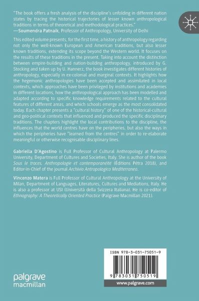 This edited volume presents, for the first time, a history of anthropology regarding not only the well-known European and American traditions, but also lesser known traditions, extending its scope beyond the Western world. It focuses on the results of these traditions in the present. Taking into account the distinction between empire-building and nation-building anthropology, introduced by G. Stocking and taken up by U. Hannerz, the book investigates different histories of anthropology, especially in ex-colonial and marginal contexts. It highlights how the hegemonic anthropologies have been accepted and assimilated in local contexts, which approaches have been privileged by institutions and academies in different locations, how the anthropological approach has been modelled and adapted according to specific knowledge requirements related to the cultural features of different areas, and which schools emerge as the most consolidated today. Each chapter presents a "cultural history" of one of the historical-cultural and geo-political contexts that influenced and produced the specific disciplinary traditions. The chapters highlight the local contributions to the discipline, the influences that the world centres have on the peripheries, but also the ways in which the peripheries have "learned from the centres" in order to re-elaborate meaningful or otherwise recognisable disciplinary lines.