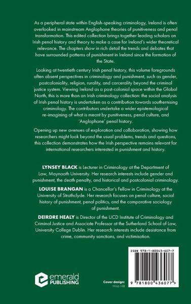 This volume contains an Open Access Chapter Leading scholars on Irish penal history and theory explore trends and debates that have surrounded patterns of punishment in Ireland since the formation of the State and foreground often absent perspectives in criminology and punishment.