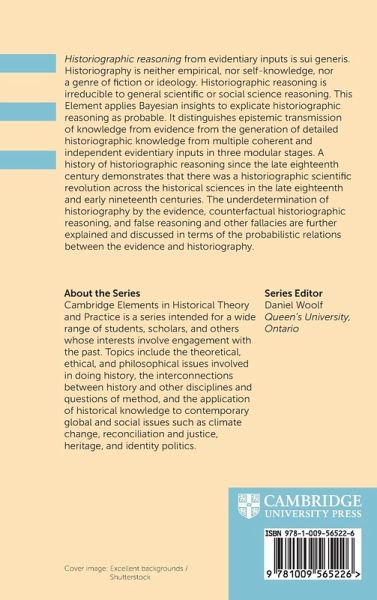 Historiographic reasoning from evidentiary inputs is sui generis. Historiography is neither empirical, nor self-knowledge, nor a genre of fiction or ideology. Historiographic reasoning is irreducible to general scientific or social science reasoning. The book applies Bayesian insights to explicate historiographic reasoning as probable. It distinguishes epistemic transmission of knowledge from evidence from the generation of detailed historiographic knowledge from multiple coherent and independent evidentiary inputs in three modular stages. A history of historiographic reasoning since the late 18th century demonstrates that there was a historiographic scientific revolution across the historical sciences in the late 18th and early 19th centuries. The underdetermination of historiography by the evidence, counterfactual historiographic reasoning, and false reasoning and other fallacies are further explained and discussed in terms of the probabilistic relations between the evidence and historiography.