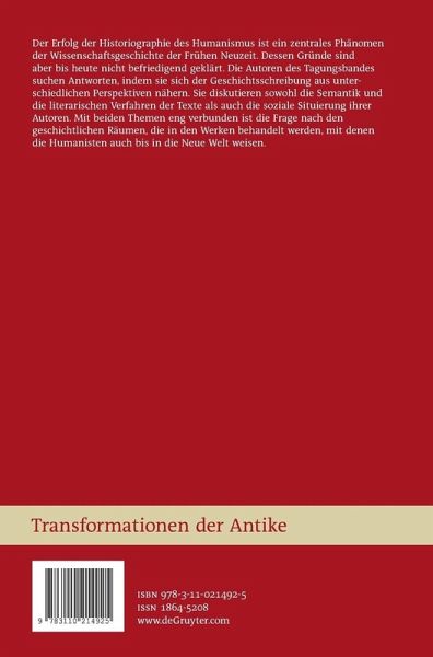 Der literarische und wissenschaftliche Erfolg der Historiographie des Renaissance-Humanismus ist ein zentrales Phänomen der Wissenschaftsgeschichte der Frühen Neuzeit. Dabei sind die Gründe für diesen Erfolg bis heute nicht befriedigend geklärt. Die Autoren des Bandes, der aus einer Tagung des Berliner Sonderforschungsbereichs "Transformationen der Antike" hervorgegangen ist, suchen Antworten auf diese Frage, indem sie sich der Geschichtsschreibung der Humanisten aus unterschiedlichen Forschungsperspektiven nähern. Sie diskutieren sowohl die Semantik und die in den Texten nachweisbaren literarischen Verfahren als auch die soziale Situierung ihrer Autoren. Mit beiden Themen eng verbunden ist die Frage nach den geschichtlichen Räumen, die in den humanistischen Werken behandelt werden, nach Zentren und Peripherien sowie der Rolle von Region und Nation. Hierbei weisen die Humanisten im Zeitalter der Entdeckungen über Italien und Europa hinaus bereits bis in die Neue Welt.