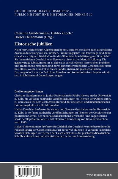 Nicht nur Geschichte im Allgemeinen boomt, sondern vor allem auch die zyklische Auseinandersetzung mit ihr. Jubiläen, Erinnerungsjahre und Jahrestage sind daher eine der wichtigsten Triebfedern für die öffentliche Beschäftigung mit Geschichte. Sie thematisieren Geschichte als Ressource historischer Identitätsbildung. Die gegenwärtige Jubiläumskultur ist dabei aus verschiedenen historischen Praktiken und Traditionen entstanden und durch ganz unterschiedliche Geschichtskulturen beeinflusst worden. Im Fokus dieses Bandes stehen die gesellschaftlichen Deutungen in Form von Praktiken, Ritualen und kommunikativen Regeln, wie sie sich in Jubiläen und Gedenktagen zeigen.