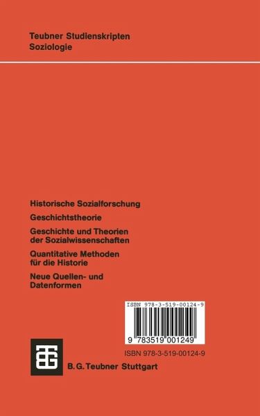 I. Geschichtstheorie und Historische Sozialforschung.- 1. Einleitung.- 2. Historische Sozialforschung als geschichtstheoretische Konzeption.- 3. Historismus.- 4. Neohistorismus.- 5. Narrative Geschichtskonzeption.- 6. Analytische Geschichtsphilosophie.- 7. Marxistische Geschichtskonzeption.- 8. Schule der Annales.- 9. Geschichte als Historische Sozialwissenschaft.- 10. Vergleich der Ansätze.- II. Ansätze der Historischen Sozialforschung.- 1. Einleitung.- 2. Die Neue Wirtschaftsgeschichte.- 3. Die Neue Politische Geschichte.- 4. Die Neue Sozialgeschichte.- 5. Die Neue Stadtgeschichte.- 6. Historisch-vergleichende Forschung.- III. Theorien und Geschichte.- 1. Einleitung.- 2. Theorien der sozialen Evolution: Das "eigentliche" Theorieangebot der Sozialwissenschaften an die Historie?.- 3. Soziobiologie.- 4. Geschichte in evolutionstheoretischer Perspektive.- IV. Methoden der Historischen Sozialforschung.- 1. Einleitung.- 2. Deskriptive, bi- und multivariate Statistik.- 3. Zeitreihenanalyse.- 4. Strukturerkennungsverfahren.- 5. Simultangleichungs-Systeme.- 6. Computer-Simulation.- 7. Künstliche Intelligenz.- 8. Computer und Historische Sozialforschung.- V. Neue Daten und Neue Quellen.- 1. Einleitung.- 2. Inhaltsanalyse.- 3. Cognitive Mapping.- 4. Gewinnung prozess-produzierter Daten.- 5. Ereignisanalyse (Events Analysis).- 6. Psychobiographie, Lebensgeschichte und mündliche Tradition (oral history).- 7. Datenbanken, Datenbasen und wissenschaftliche Information.- VI.Perspektiven der Historischen Sozialforschung.- Literatur.- Register.