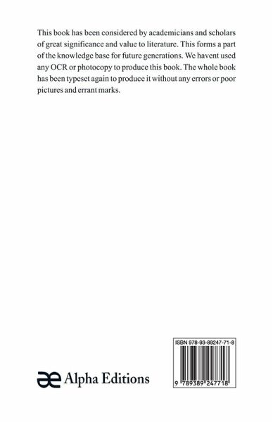 This book has been considered by academicians and scholars of great significance and value to literature. This forms a part of the knowledge base for future generations. We have represented this book in the same form as it was first published. Hence any marks seen are left intentionally to preserve its true nature.