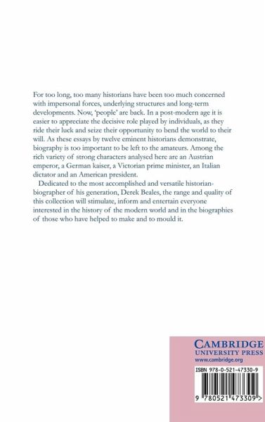 For too long, too many historians have been too much concerned with impersonal forces, underlying structures and long-term developments. Now, 'people' are back. In a post-modern age it is easier to appreciate the decisive role played by individuals, as they ride their luck and seize their opportunity to bend the world to their will. As these essays by twelve eminent historians demonstrate, biography is too important to be left to the amateurs. Among the rich variety of strong characters analysed here are an Austrian emperor, a German kaiser, a Victorian prime minister, an Italian dictator, and an American president. Dedicated to a master-biographer, Derek Beales, the range and quality of this collection will stimulate, inform and entertain everyone interested in the history of the modern world.