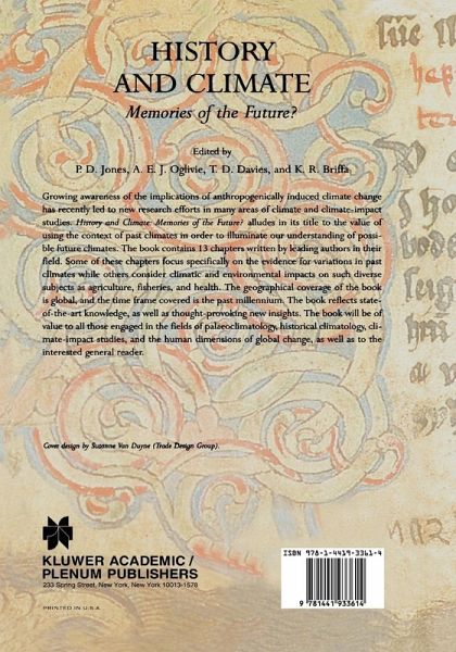 Most studies of the impacts of climate change consider impacts in the future from anthropogenic climate change. Very few consider what the impacts of past climate change have been. History and Climate: Memories of the Future? contains 13 interdisciplinary chapters which consider impacts of change in different regions of the world, over the last millennium. Initial chapters assess evidence for the changes, while later chapters consider the impacts on agriculture, fisheries, health, and society. The book will be of interest to anyone working in the field of climate change and history.