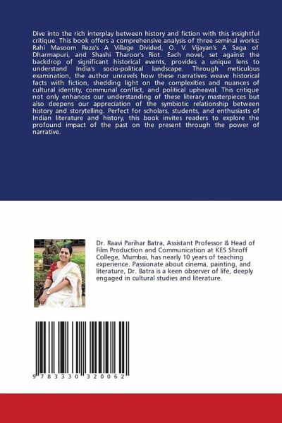 Dive into the rich interplay between history and fiction with this insightful critique. This book offers a comprehensive analysis of three seminal works: Rahi Masoom Reza's A Village Divided, O. V. Vijayan's A Saga of Dharmapuri, and Shashi Tharoor's Riot. Each novel, set against the backdrop of significant historical events, provides a unique lens to understand India's socio-political landscape. Through meticulous examination, the author unravels how these narratives weave historical facts with fiction, shedding light on the complexities and nuances of cultural identity, communal conflict, and political upheaval. This critique not only enhances our understanding of these literary masterpieces but also deepens our appreciation of the symbiotic relationship between history and storytelling. Perfect for scholars, students, and enthusiasts of Indian literature and history, this book invites readers to explore the profound impact of the past on the present through the power of narrative.