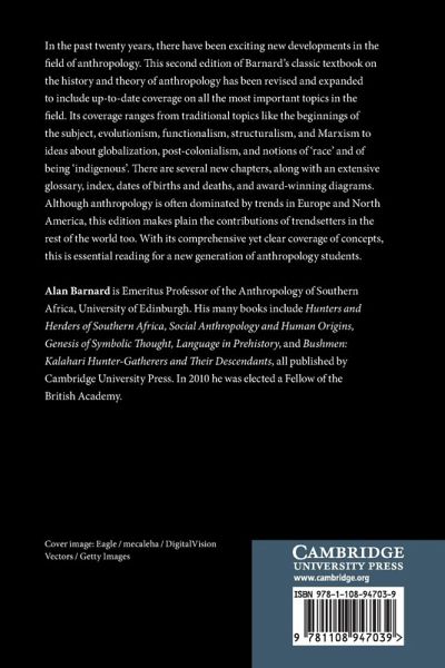 Twenty years after the first edition of his classic overview of the history and theory of anthropology, Barnard has written a revised edition for a new generation of students. It has a wider geographic coverage and includes new material on feminism, Marxism, action and process, nationalism, indigeneity, and 'race'.