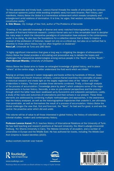 Relying on primary sources in seven languages and books written by hundreds of African, Asian, Middle Eastern and South American scholars, Lorenzo Kamel examines the coloniality of power in historical research and sheds light on the largely neglected roles of the "others" and their modernities in history. The book provides three elements combined. Firstly, a thorough analysis of the process of accumulation ("knowledge piece by piece") which underpins some of the major achievements in human history. Secondly, a view on pre-colonial perspectives and the process through which the latter have been swallowed up by Eurocentric and solipsistic perceptions. Lastly, a study of the roots and outcomes of colonialisms and their echoes in our present. These three elements are addressed by combining multiple methodologies and approaches, in the awareness that the history analysed, as well as the historiographical trajectories that underlie it, are ultimately inter-penetrable, as well as themselves the result of a process of accumulation. History Below the Global challenges the view that, first and foremost, the "West", for bad and for good, is and was the centre: the proactive actor which did and undid.