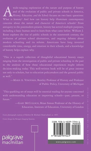 "This nifty collection of previously published articles adds to William J. Reese's established reputation as one of the foremost historians of American education...History, Education and the Schools is an excellent historiography, perfect for undergraduate and graduate courses on the topic." - Andrew Hartman, Register of the Kentucky Historial Society"This is a superb collection of throughtful educational history essays ranging from the investigation of public and private schooling in the past to the analysis of how those educational experiences might inform decision-making today. This well-written book will be of great interest not only to scholars, but to education policymakers and the general public as well." - Maris A. Vinovskis, Bentley Professor of History and Professor of Public Policy, University of Michigan"This sparkling set of essays will be essential reading for anyone concerned with understanding education or improving schools - past, present, or future." - Gary McCulloch, Brian Simon Professor of the History of Educatin, Institute of Education, University of London"This volume is timely, unique, and accessible. Highly recommended." - CHOICE