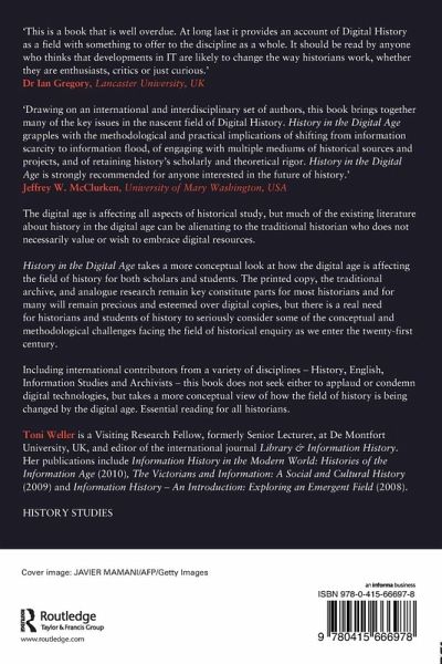 The digital age is affecting all aspects of historical study, but much of the existing literature about history in the digital age can be alienating to the traditional historian who does not necessarily value or wish to embrace digital resources. History in the Digital Age takes a more conceptual look at how the digital age is affecting the field of history for both scholars and students. The printed copy, the traditional archive, and analogue research remain key constitute parts for most historians and for many will remain precious and esteemed over digital copies, but there is a real need for historians and students of history to seriously consider some of the conceptual and methodological challenges facing the field of historical enquiry as we enter the twenty-first century. Including international contributors from a variety of disciplines - History, English, Information Studies and Archivists - this book does not seek either to applaud or condemn digital technologies, but takes a more conceptual view of how the field of history is being changed by the digital age. Essential reading for all historians.