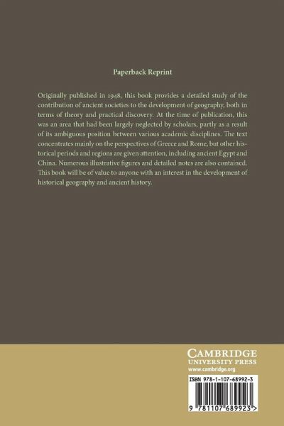 Originally published in 1948, this book provides a detailed study of the contribution of ancient societies to the development of geography, both in terms of theory and practical discovery. At the time of publication, this was an area that had been largely neglected by scholars, partly as a result of its ambiguous position between various academic disciplines. The text concentrates mainly on the perspectives of Greece and Rome, but other historical periods and regions are given attention, including ancient Egypt and China. Numerous illustrative figures and detailed notes are also contained. This book will be of value to anyone with an interest in the development of historical geography and ancient history.