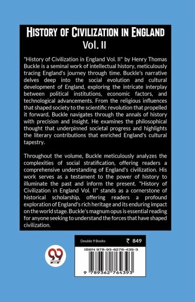"History of Civilization in England Vol. II" by Henry Thomas Buckle is a seminal work of intellectual history, meticulously tracing England's journey through time. Buckle's narrative delves deep into the social evolution and cultural development of England, exploring the intricate interplay between political institutions, economic factors, and technological advancements. From the religious influences that shaped society to the scientific revolution that propelled it forward, Buckle navigates through the annals of history with precision and insight. He examines the philosophical thought that…mehr
