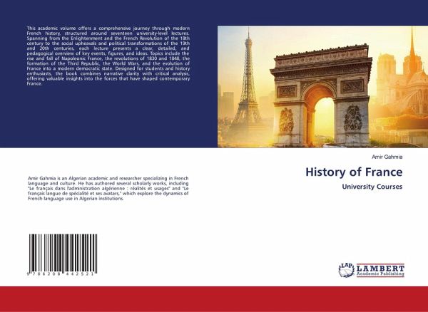 This academic volume offers a comprehensive journey through modern French history, structured around seventeen university-level lectures. Spanning from the Enlightenment and the French Revolution of the 18th century to the social upheavals and political transformations of the 19th and 20th centuries, each lecture presents a clear, detailed, and pedagogical overview of key events, figures, and ideas. Topics include the rise and fall of Napoleonic France, the revolutions of 1830 and 1848, the formation of the Third Republic, the World Wars, and the evolution of France into a modern democratic state. Designed for students and history enthusiasts, the book combines narrative clarity with critical analysis, offering valuable insights into the forces that have shaped contemporary France.
