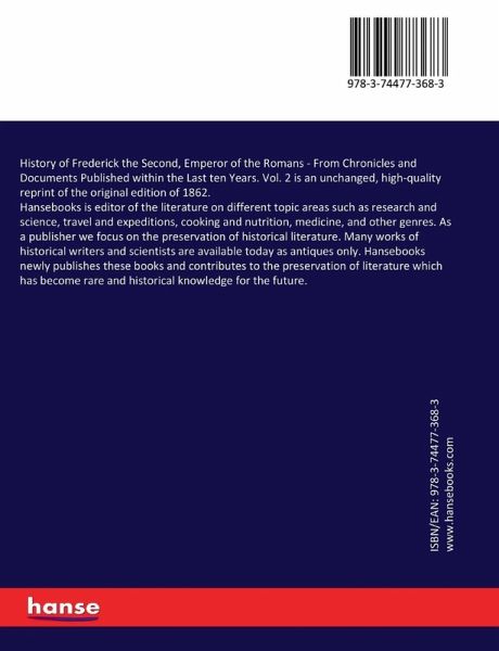 History of Frederick the Second, Emperor of the Romans - From Chronicles and Documents Published within the Last ten Years. Vol. 2 is an unchanged, high-quality reprint of the original edition of 1862.