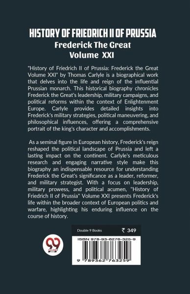 "History of Friedrich II of Prussia: Frederick the Great Volume XXI" by Thomas Carlyle is a biographical work that delves into the life and reign of the influential Prussian monarch. This historical biography chronicles Frederick the Great's leadership, military campaigns, and political reforms within the context of Enlightenment Europe. Carlyle provides detailed insights into Frederick's military strategies, political maneuvering, and philosophical influences, offering a comprehensive portrait of the king's character and accomplishments. As a seminal figure in European history, Frederick's reign reshaped the political landscape of Prussia and left a lasting impact on the continent. Carlyle's meticulous research and engaging narrative style make this biography an indispensable resource for understanding Frederick the Great's significance as a leader, reformer, and military strategist. With a focus on leadership, military prowess, and political acumen, "History of Friedrich II of Prussia" Volume XXI presents Frederick's life within the broader context of European politics and warfare, highlighting his enduring influence on the course of history.