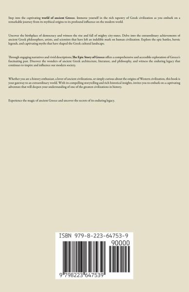 Step into the captivating world of ancient Greece. Immerse yourself in the rich tapestry of Greek civilization as you embark on a remarkable journey from its mythical origins to its profound influence on the modern world. Uncover the birthplace of democracy and witness the rise and fall of mighty city-states. Delve into the extraordinary achievements of ancient Greek philosophers, artists, and scientists that have left an indelible mark on human civilization. Explore the epic battles, heroic legends, and captivating myths that have shaped the Greek cultural landscape. Through engaging narratives and vivid descriptions,The Epic Story of Greece offers a comprehensive and accessible exploration of Greece's fascinating past. Discover the wonders of ancient Greek architecture, literature, and philosophy, and witness the enduring legacy that continues to inspire and influence our modern society. Whether you are a history enthusiast, a lover of ancient civilizations, or simply curious about the origins of Western civilization, this book is your gateway to an extraordinary world. With its compelling storytelling and rich historical insights, invites you to embark on a captivating adventure that will deepen your understanding of one of the greatest civilizations in history. Experience the magic of ancient Greece and uncover the secrets of its enduring legacy.