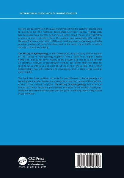 Lessons can be learnt from the past; from time to time it is useful for practitioners to look back over the historical developments of their science. Hydrogeology has developed from humble beginnings into the broad church of investigatory procedures which collectively form the modern-day hydrogeologist's tool box. Hydrogeology remains a branch of the over-arching science of geology and today provides analysis of the sub-surface part of the water cycle within a holistic approach to problem solving. The History of Hydrogeology, is a first attempt to bring the story of the evolution of the science of hydrogeology together from a country- or region-specific viewpoint. It does not cover history to the present day, nor does it deal with all countries involved in groundwater studies, but rather takes the story for specific key countries up and until about the period 1975 to 1980. This is when hydrogeology was still evolving and developing, and in some areas doing so quite rapidly. The book has been written not only for practitioners of hydrogeology and hydrology but also for teachers and students to see the context of the evolution of the science around the globe. The History of Hydrogeology will also be of interest to science historians and all those interested in the role that individuals, institutes and nations have played over the years in defining modern day studies of groundwater.