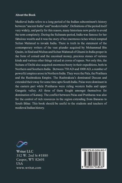 Medieval India refers to a long period of the Indian subcontinent's history between "ancient India" and "modern India". Definitions of the period itself vary widely, and partly for this reason, many historians now prefer to avoid the term completely. During the Sultanate period, India was famous for her fabulous wealth and it was the story of her enormous riches which tempted Sultan Mahmud to invade India. There is truth in the statement of the contemporary writers of the vast plunder acquired by Mohammad Bin Qasim, in Sind and Multan and Sultan Mahmud of Ghazni in India proper in the form of coined and the uncoined money, precious stones of various kinds and various other things valued at crores of rupees. Not only this, the Sultans of Delhi also acquired enormous booty in their expeditions, both in Northern and Southern India. Between 750 AD and 1000 AD, a number of powerful empires arose in Northern India. They were the Pala, the Pratihara and the Rashtrakuta Empire. The Rashtrakuta's dominated Deccan and extended their sway for some time upto South India. Palas were dominant in the eastern part while Pratiharas were ruling western India and upper Gangatic valley. All three of them fought amongst themselves for domination of Kanauj. The conflict between Palas and Pratiharas was also for the control of rich resources in the region extending from Banaras to South Bihar. This book should be useful to the students and teachers of medieval Indian history.