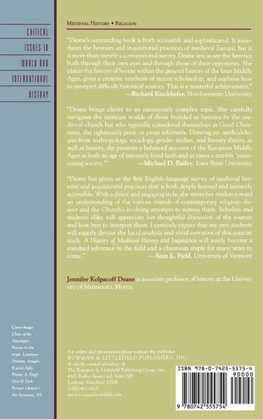 This concise and balanced survey of heresy and inquisition in the Middle Ages examines the dynamic interplay between competing medieval notions of Christian observance, tracing the escalating confrontations between piety, reform, dissent, and Church authority between 1100 and 1500. Jennifer Kolpacoff Deane explores the diverse regional and cultural settings in which key disputes over scripture, sacraments, and spiritual hierarchies erupted, events increasingly shaped by new ecclesiastical ideas and inquisitorial procedures. Incorporating recent research and debates in the field, her analysis brings to life a compelling issue that profoundly influenced the medieval world.