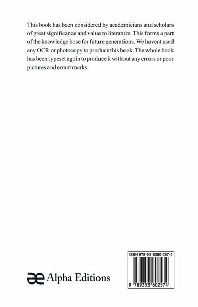 This book has been considered by academicians and scholars of great significance and value to literature. This forms a part of the knowledge base for future generations. We have represented this book in the same form as it was first published. Hence any marks seen are left intentionally to preserve its true nature.