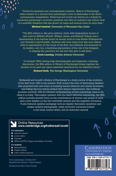 Hothersall and Lovett's History of Psychology is a lively survey of the evolution of the field from 1850 to the present. Built around the lives of fascinating thinkers who proposed bold new ways of studying human behavior and mental processes, and telling the true stories behind their famous experiments, this textbook provides students with an intimate understanding of how psychology came to be what it is today. Thoroughly updated with the latest historical scholarship, the fifth edition includes greater focus on the contributions of women and people of color, and a new chapter on the late twentieth century and the cognitive revolution. It also features updated pedagogy such as chapter discussion questions and unique archival photographs, while instructor resources include a test bank, lecture slides, and an instructor manual.