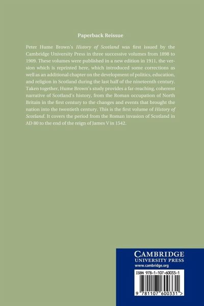 Peter Hume Brown's History of Scotland was first issued by the Cambridge University Press in three successive volumes from 1898 to 1909. These volumes were published in a new edition in 1911, the version which is reprinted here, which introduced some corrections as well as an additional chapter on the development of politics, education, and religion in Scotland during the last half of the nineteenth century. Taken together, Hume Brown's study provides a far-reaching, coherent narrative of Scotland's history, from the Roman occupation of North Britain in the first century to the changes and events that brought the nation into the twentieth century. This is the first volume of History of Scotland. It covers the period from the Roman invasion of Scotland in AD 80 to the end of the reign of James V in 1542.