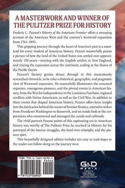 A Masterwork and Winner of The Pulitzer Prize for History Frederic L Paxson's History of the American Frontier offers a sweeping account of the American West and the country's westward expansion from 1763-1893. This gripping journey through the heart of America's past is a must-read for every student of American history. Paxson masterfully paints a picture of how the land of the United States was settled over approximately 150 years, starting with the English settlers in New England and tracing the expansion across the continent, ending at the shores of the Pacific Ocean. Paxton's literary genius shines through in this meticulously researched chronicle as he takes a historical, geographic, and pragmatic view of Westward expansion. He masterfully illuminates the untamed expanses, courageous pioneers, and the pivotal events in American history, from the War for Independence to the Louisiana Purchase, regional conflicts with Native Americans as well as the Civil War. In addition to these events that shaped American history, Paxton offers keen insight into the intricacies behind the scenes of frontier finance, executive orders from Presidents Washington to Roosevelt, and an inside look at the corporations who constructed and managed the canals and railroads. The vivid portrait Paxton paints of this captivating era in American history was worthy of The Pulitzer Prize he received in History for his portrayal of the intense struggles, the hard won triumphs and the pioneer spirt. This beautifully designed edition includes 10 easy to read maps so the reader can follow along on the journey west.