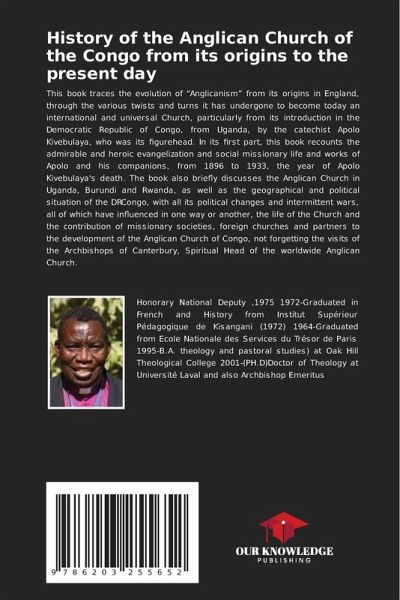 This book traces the evolution of "Anglicanism" from its origins in England, through the various twists and turns it has undergone to become today an international and universal Church, particularly from its introduction in the Democratic Republic of Congo, from Uganda, by the catechist Apolo Kivebulaya, who was its figurehead. In its first part, this book recounts the admirable and heroic evangelization and social missionary life and works of Apolo and his companions, from 1896 to 1933, the year of Apolo Kivebulaya's death. The book also briefly discusses the Anglican Church in Uganda, Burundi and Rwanda, as well as the geographical and political situation of the DRCongo, with all its political changes and intermittent wars, all of which have influenced in one way or another, the life of the Church and the contribution of missionary societies, foreign churches and partners to the development of the Anglican Church of Congo, not forgetting the visits of the Archbishops of Canterbury, Spiritual Head of the worldwide Anglican Church.