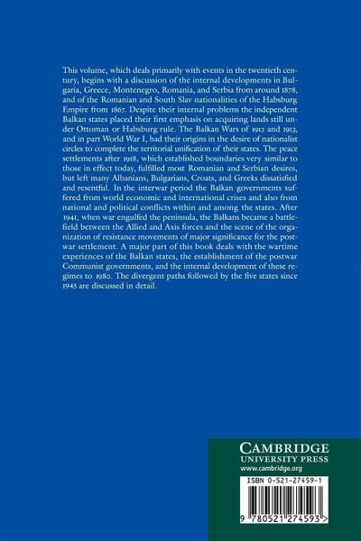 Volume II concentrates on the Balkan wars and the 2nd World War; both had their origins in the desire of nationalist circles to complete the territorial unification of their states. A substantial part of this book deals with the wartime experience, the establishment of the postwar regimes and their internal development to 1980 and the divergent paths followed by the five states [Bulgaria, Greece, Montenegro, Romania and Serbia] since 1945.