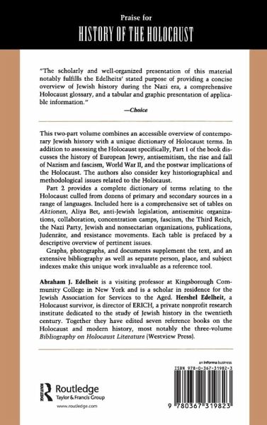 'The scholarly and well-organized presentation of this material notably fulfills the Edelheits' stated purpose of providing a concise overview of Jewish history during the Nazi era, a comprehensive Holocaust glossary, and a tabular and graphic presentation of applicable information.' -Choice