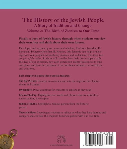 Presents Jewish history from the turmoil and strife of Russia in the 1880's, to the great migration to the United States, the creation of the modern State of Israel, modern American Jewish life, and life in the Diaspora. Finally, a Jewish history book through which students can view their own lives and think about their futures! The History of the Jewish People, Volume 2 was developed and written by two esteemed scholars, Jonathan D. Sarna and Jonathan B. Krasner. This dynamic text (for grades 5-7) is a rich presentation of Jewish history from the turmoil and strife of Russia in the 1880's, to the great migration to the United States, the creation of the modern State of Israel, modern American Jewish life, and life in the Diaspora. Each chapter helps students consider how their lives compare with the lives of our ancestors, how each generation adapts Judaism to its time and place, and how the decisions of previous generations influence our own lives and decisions.The History of the Jewish People, Volume 2 brings these times alive through a dynamic array of famous personalities, diverse source material, clear and concise charts, engaging activities, thought-provoking questions, and exciting graphics, including maps and more than 80 full-color historical and contemporary images.