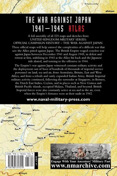 A full assembly of all 223 maps and sketches from UNITED KINGDOM MILITARY SERIES: OFFICIAL CAMPAIGN HISTORY - THE WAR AGAINST JAPAN. These official maps will help unravel the complexities of a difficult war that saw the Allies pitted against Japan. The British Empire waged ceaseless war against Japan between December 1941 and August 1945, in defeat and retreat at first, stabilising in 1943 as the Allies hit back and the Japanese tide abated, and turning to the offensive in 1944. The Empire's war against Japan witnessed constant military activity and the deployment east of Suez of hundreds of thousands of imperial service personnel on land, sea and air, from Australasia, Britain, East and West Africa, and from a rebuilt and vastly expanded Indian Army. British Imperial military activity continued, following the surrender at Singapore, in Borneo, the Dutch East Indies, Ceylon, and in places such as New Guinea and British Pacific islands, occupied Malaya, Thailand, and beyond. British Imperial forces were also constantly active at sea and in the air, even when the Empire's fortunes were at their nadir in 1942.