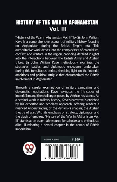"History of the War in Afghanistan Vol. III" by Sir John William Kaye is a comprehensive account of military history focusing on Afghanistan during the British Empire era. This authoritative work delves into the complexities of colonialism, conflict, and warfare in the region, providing detailed insights into the interactions between the British Army and Afghan tribes. Sir John William Kaye meticulously examines the strategies, battles, and diplomatic endeavors undertaken during this tumultuous period, shedding light on the imperial ambitions and political intrigue that characterized the…mehr