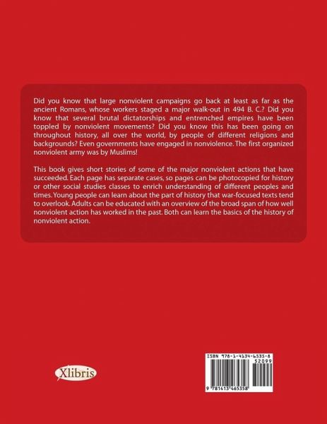 Did you know that large nonviolent campaigns go back at least as far as the ancient Romans, whose workers staged a major walk-out in 494 B. C.? Did you know that several brutal dictatorships and entrenched empires have been toppled by nonviolent movements? Did you know this has been going on throughout history, all over the world, by people of different religions and backgrounds? Even governments have engaged in nonviolence. The first organized nonviolent army was by Muslims! This book gives short stories of some of the major nonviolent actions that have succeeded. Each page has separate cases, so pages can be photocopied for history or other social studies classes to enrich understanding of different peoples and times. Young people can learn about the part of history that war-focused texts tend to overlook. Adults can be educated with an overview of the broad span of how well nonviolent action has worked in the past. Both can learn the basics of the history of nonviolent action.